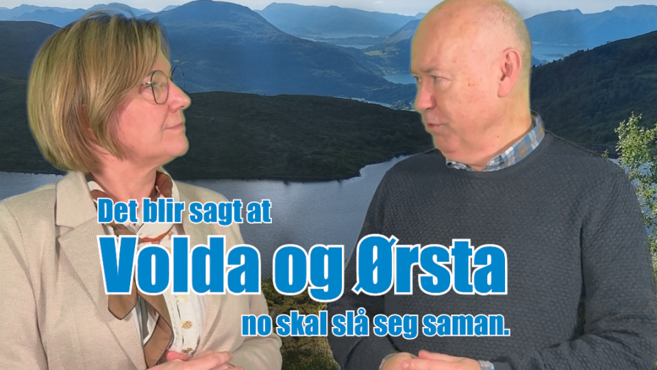 Skal Volda og Ørsta slå seg saman? Samarbeid og samanslåing – Høyr ordførarane, Sølvi Dimmen og Per-Are Sørheim, forklare kva som skal skje.