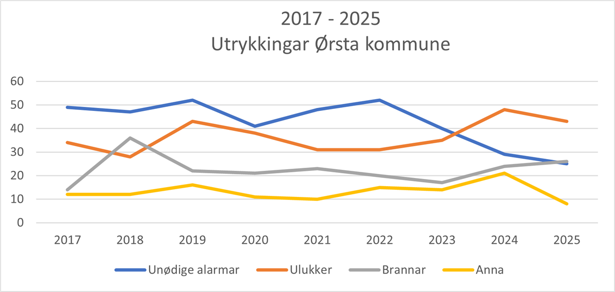 Typar utrykkingar i Ørsta kommune 2025. (Klikk for større bilde)