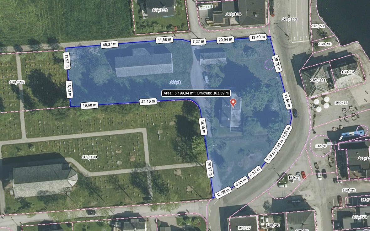 Planområdet ligger sentralt i bygda, og omfatter prestebolig, garasje, låve og offentlig park.Gangveien mellom kirkegården og presteboligen skiller presteboligen med hage («presteboligtomta») fra låve med tilhørende areal («låvetomta»). Gangveien inngår i planområdet. Det samme gjør øst-vest-gående del av Prestegardsvegen, som blir til Kyrkjevegen. Planområdet utgjør ca 5,7 daa.Figur 1 - PlanområdetFormålet med planen er å omregulere østre del av planområdet, presteboligtomta, til sentrumsformål, og vestre del av tomta, låvetomta, til boligformål. Parkområdet sør på presteboligtomta tenkes opprettholdt som grøntområde -park, men det er mulig grense mellom boligtomt (sentrumsformål) og park endres noe, for optimalisering av begge formål.Oppstartsmøte med kommunen ble avholdt 11. juni 2025. Planinitiativ ble sendt kommunen 25. april. Planinitiativ og referat fra oppstartsmøtet legges ved dette brevet.