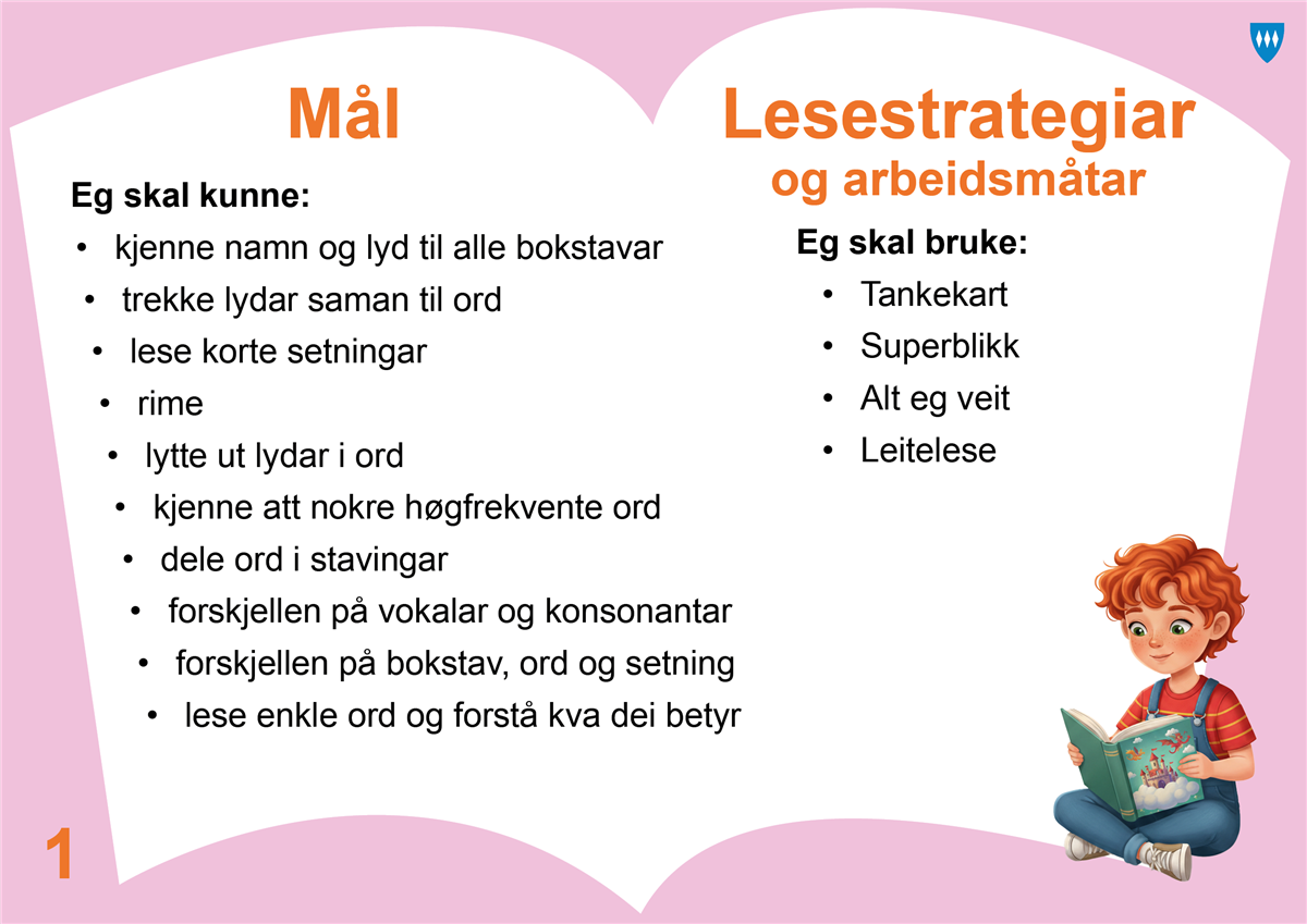 1. trinnLæringsaktivitetar BokstavinnlæringØve på ein og ein bokstav ABC Bokstavspel Bokstavspel - krokodille Graphogame- ligg under appar på skyaAskiRaskiBokstavkongenStasjonsarbeidLesekorpsetPå SporetiMalSporing av bokstavar (Spire, Aski Raski startpakken, iMal ....)Grej of the day Lytte ut lydar,docs.google.com/document/d/1NgOp-1fehmuypgi-l1G_ijAyiuif9V9qLpi-pHb2Vl0/edit?usp=drive_link finne ut kvar i ordet lyden/bokstaven er Kople saman stor og liten bokstav Salaby (kan t.d. bruke bokstavkort frå Aski Raski startpakken under spel “memory bokstavkort)Bytte ut, ta vekk eller legge til lydar i ord, t.d mil, bil, silBokstavmemory Aski Raski startpakken- ligg under spelLeite etter ord og bokstavar i tekstar/blad/reklamerFinne bokstavar på tastatur Ta med ting som startar på den bokstaven dei skal læreBruke bilete for å kople elevane på tema, t.d. bokstavintroBokstavkortArbeide med bokstavane både digitalt og med blyant ImalBingoLytte ut lydar Lytte ut lydar-lottoRim og stavingarDele opp ord i stavingarLesespel (Aski Raski startpakken)RimlottoSong og rytme, klappe stavingarOmgrep og ordforråd Arbeid med grunnleggande omgrepKongen befalerLesespel (Aski Raski startpakken)AliasFrost sine språkleikar Omgrepsøvingar Omgrep Statped Lesing av ord og setningar HøgtlesingSamlesingLese i slangeLeite etter ord og bokstavar i tekstarLesespel (Aski Raski startpakken)Relemo Leseforståingsark/bok Leseforståing (fysiske bøker)JonsbråthenLese nonordModellere leselekse og lese leseleksa for ein vaksen på skulenHøgfrekvente ord spelBingoSansemotorisk Fargelegging, måle, plastelina, Bygge bokstavar i lego eller plus plus , lage noko (ta med noko) som startar på bokstaven, piperensarar, tråd, salt, sand, vatn på tavlaSporing av bokstavar med whiteboardtusj på laminerte bokstavkort, bokstavar med kroppen, bokstavar med hendene. Bokstavjakt ute (finne, hugse, skrive)FAL-aktivitet: bokstavstafett, lage ord med melketopper med bokstavar, hentediktat, springe til første lyd i eit ord (treng bokstavplakatar)Myldrebilete Undervisningsbyen Sist endra 19.11.2025 09:32
