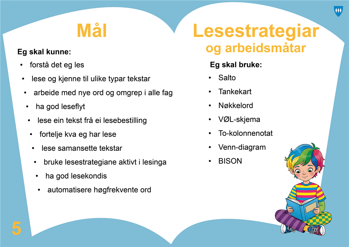 5. trinn LæringsaktivitetarSaltos lure leseknep. Lesing med mening | Gyldendal OrdnivåOrdbank (bookcreator)Blabb (Døme: Blabb/Ditto)OmgrepskartNøkkelordAliasHentediktatVekeord frå andre fag enn norsk Aski RaskiHøgtlesingFelleslesingRelemo (Feide-innlogging)Innlesing (Lage podcast: AudioEditor (Feide-innlogging) Introfilm)PresentasjonarGruppeaktivitetarProblemløysingsoppgåver: Mattelist, KenguruoppgåverDramatiseringByggje/lage, følgje oppskrifter VeggavisGjenforteljingAndre aktivitetarMindomoRelemoBibliotekbesøkLesebestilling Nynorsksenteret “Framtida junior”Blooket KahootBlyantstafett CreazaBookcreatorCanva“Bokslukerprisen” “Tid for ti”LesekvartLydbok Lingdys skoleLeselotteriNysgjerrigper Sist endra 03.03.2026 10:13